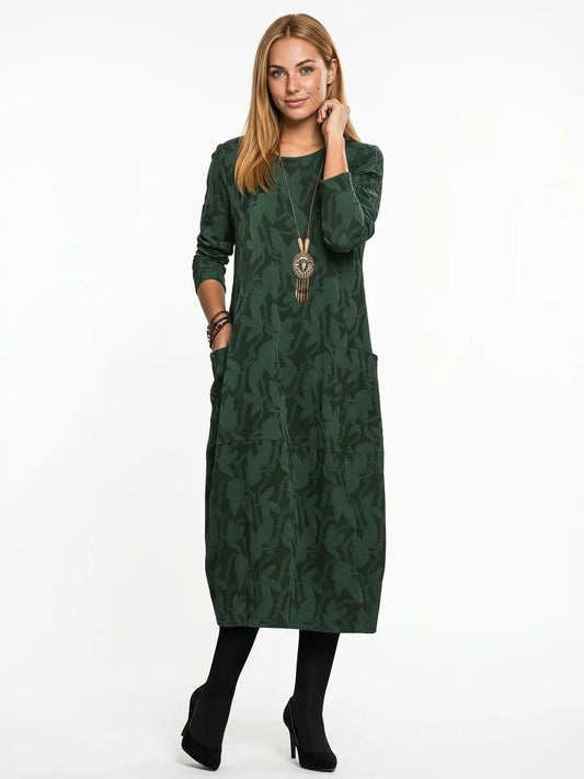 Wren Winter Midi Dress | Manga Larga, Pockets, Estampado